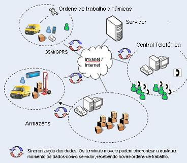 - Sincronização dos dados. Os terminais móveis podem sincronizar os dados com o servidor a qualquer momento, recebendo novas ordens de trabalho em praticamente qualquer local e qualquer altura.