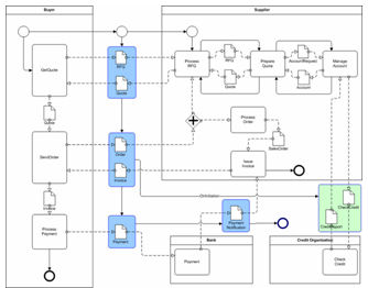 Para definir estas interacções entre componentes de negócio, é necessário existir uma descrição formal do protocolo de troca de mensagens entre si. A definição destes protocolos de negócio envolve precisamente a especificação das mensagens mutuamente visíveis e o comportamento na troca das mesmas para cada uma das partes envolvidas, sem impacto na sua implementação interna.