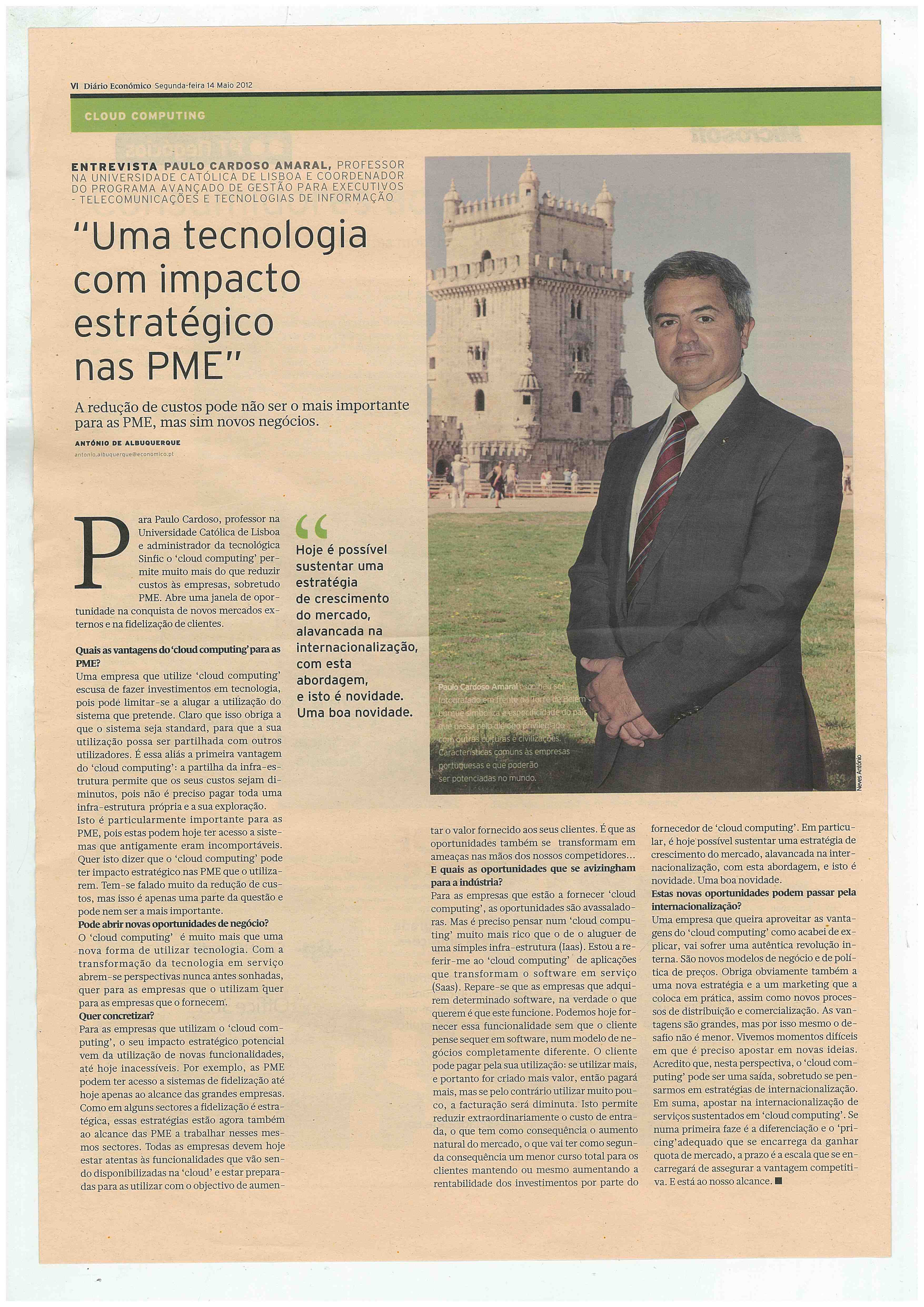Para Paulo Cardoso, professor na Universidade Católica de Lisboa e administrador da tecnológica SINFIC o "cloud computing" permite muito mais do que reduzir custos às empresas, sobretudo PME. Abre uma janela de oportunidade na conquista de novos mercados externos e na fidelização de clientes.